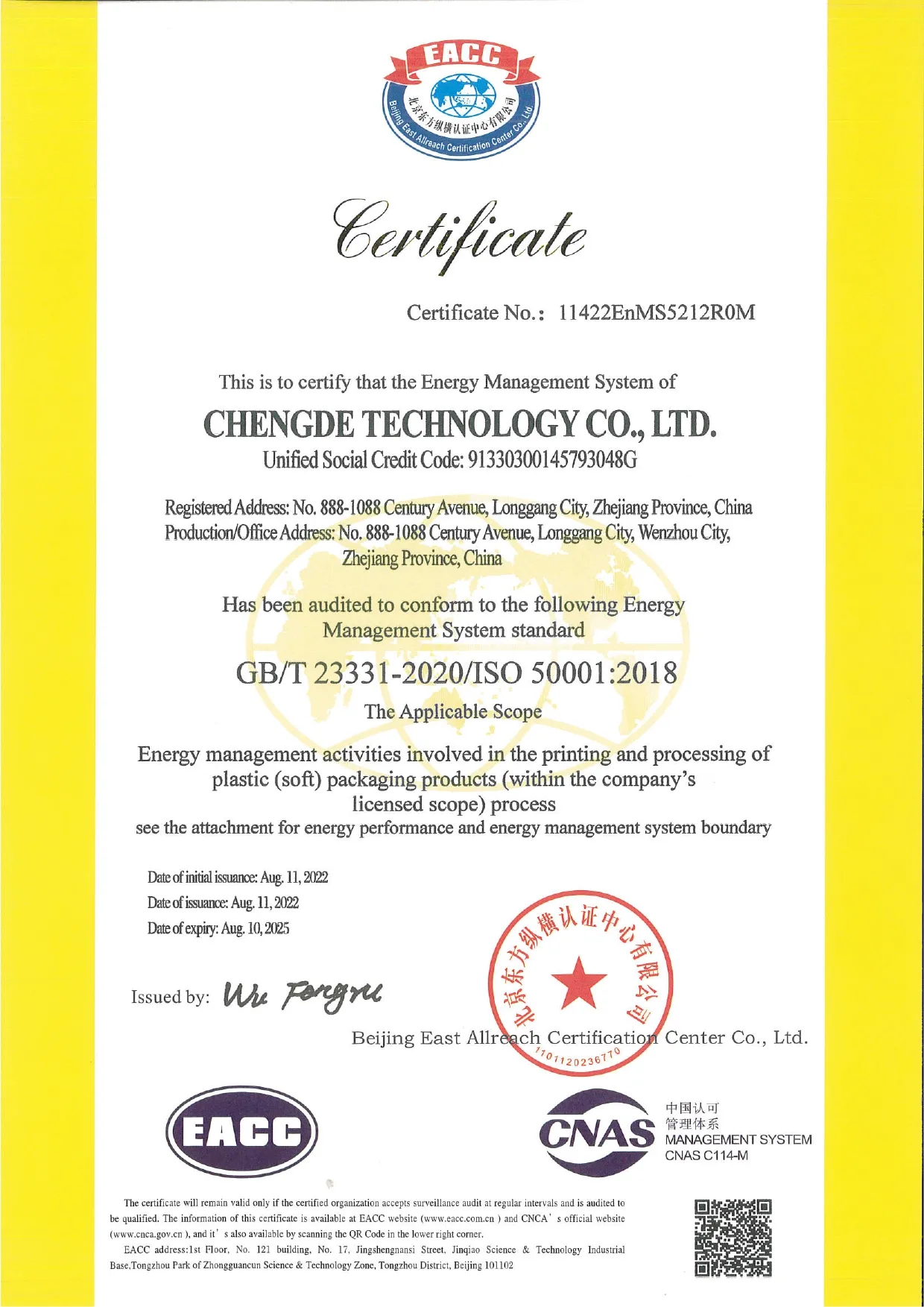 Chengde Technology, is a National High-tech enterprise established in 1999 and is specialized in supplying innovative and sustainable packaging material for food, pharmaceuticals, personal & home care products, and is leading in Mono-PE recyclable packaging.