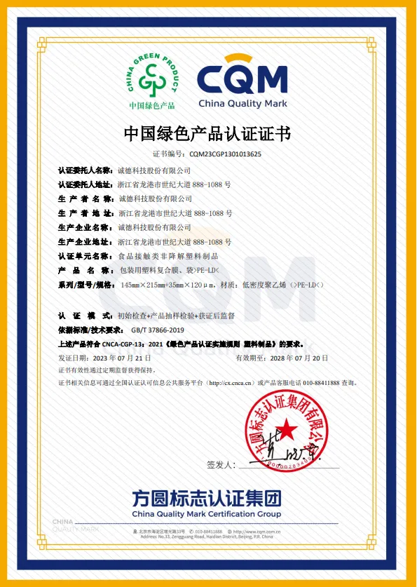 In 2021, Chengde won the Meishi Cup China Packaging Innovation and Sustainable Development Award for its "MDO High-Barrier Mono-Recyclable Eco-Friendly Packaging." By 2022, the company officially launched mono-material polyethylene stretch composite film and bag solutions.